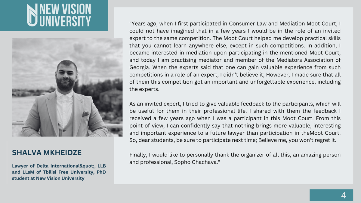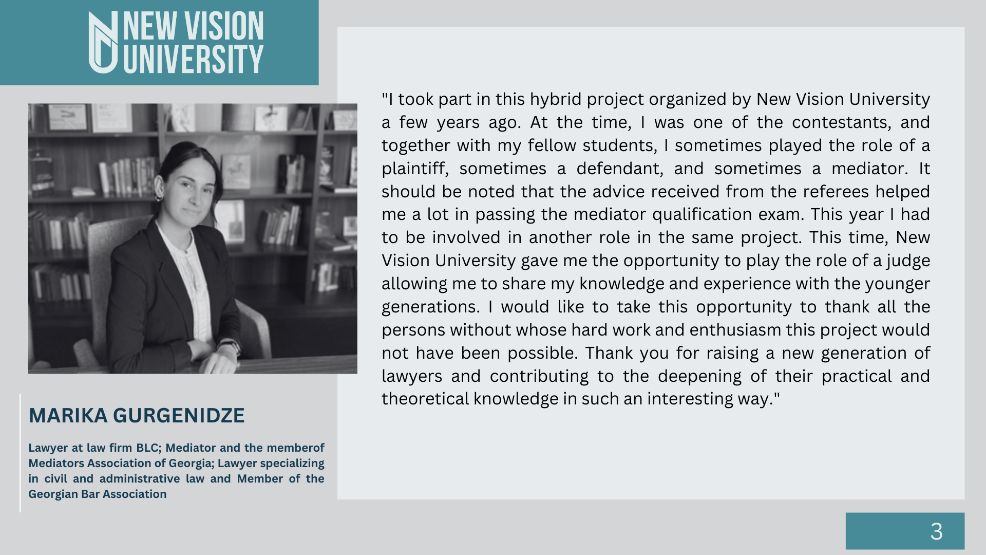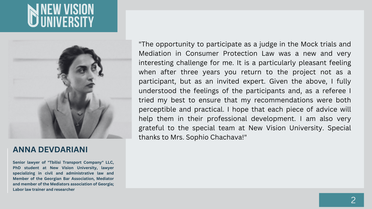 Among the judges of the 2023 Consumer Rights Protection Law mock trial and mediation competition were experts who themselves had experience of participating in these processes in previous years. Their involvement is the best proof of the lasting effect of the project.